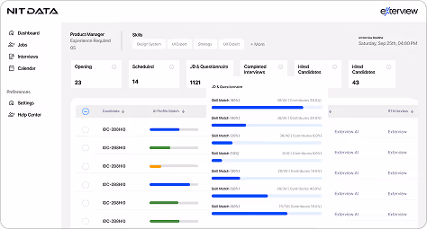 Exterview is NITDATA’s proprietary platform designed to streamline how companies discover, evaluate, and deploy pre-vetted tech talent. It serves as a real-time talent dashboard, giving clients instant access to a curated pool of qualified professionals — grouped by skill, role, and readiness.